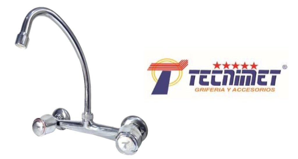 Mezcladora cocina giratoria pared bronce cromado - Tecnimet